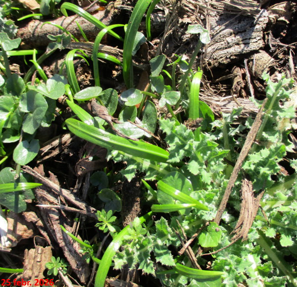 | Armbloemig look (Allium paradoxum) staat al boven de grond |