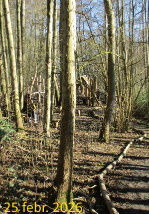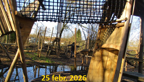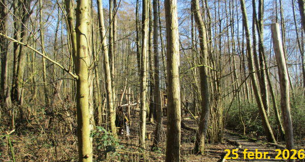 | Op de eerste lentedag van februari 2026 zijn er kinderen in het bos. Op een woensdagmiddag in het zonnetje zijn er ouders en kinderen.