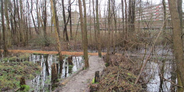 Stammetjes kwamen goed van pas om allerlei paden op te hogen. Hoger dan kan zonder stammetjes.
