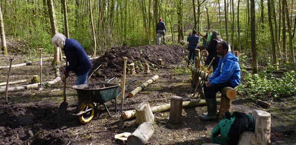 Op 28 april 2015 werd er volop gewerkt aan het hügelgebied. Een centrale hügel van 10 meter lang, 80 cm hoog, en aan de voet bijna 2 meter breed, met daarom heen allemaal kleinere heuveltjes en houten muurtjes, en achterin een vijver waaruit de grond werd gewonnen voor bovenop de hügels. |